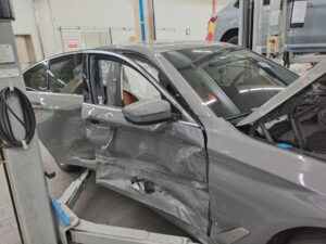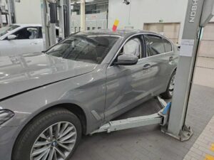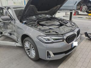 VIN : WBA11BH02MCF94726 – BMW 520i – Damage to the side of the front wheel / Airbag deployment mileage unknown .