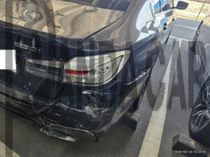 VIN : WBAJD3102JWC13197 – BMW 530i – Severe damage to the right rear section prior to total loss / Damage to rear bumper, trunk, inner panel, back panel, wheel arch, left and right rear fenders, and muffler / Headrest airbags deployed .