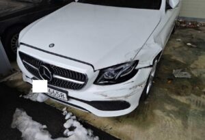 VIN : WDDZF0EB8HA016829 – E220 d – Damage to front, rear, left side, front right side, and snow road accident .