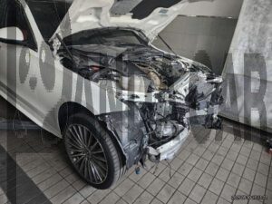 VIN : W1KAF4HB8PR087075 – Mercedes-Benz C300 4MATIC – Damage to front bumper, front fender left and right, bonnet, front panel engine exhaust (spring pipe) before total damage .