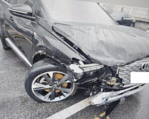 VIN : WAUZZZFZ2PP035953 – Q4 40 e-tron – Accident leased vehicle skidding on snowy road and coming into contact with guardrail .